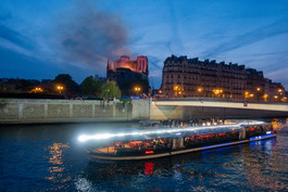 France. Paris. Notre Dame Cathedral on fire, seen from the Ile...