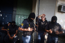 HONDURAS. San Pedro Sula. 2007. Honduran police question a man...