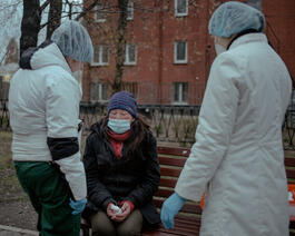 RUSSIA. Moscow. April, 2020. In the tents of the charity "Miloserdi"...