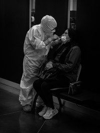 FRANCE. Marseille, April 2020. Nurses apply COVID-19 test to...