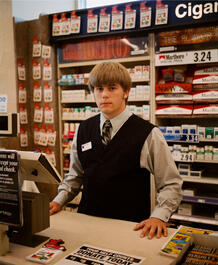 USA. Omaha, Nebraska. 2005-2018. John, service clerk at Cubby's...