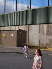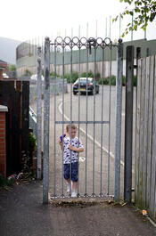NORTHERN IRELAND. Belfast. July, 2019. A Peace Wall diving Catholic...