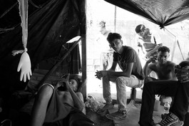 MEXICO. Sonora. 2019. Encampment where Central American migrants...