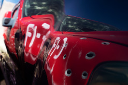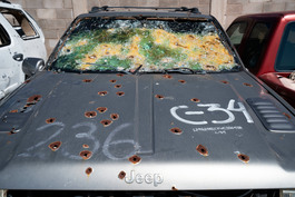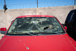 MEXICO. Caborca, Sonora. 2019. Bullet-ridden car caught in Sinaloa...