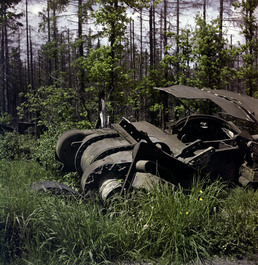 GERMANY. Near Aachen. 1947. A destroyed US tank in the Hurtgen...