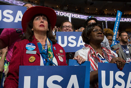 Philadelphia, PA. DNC delegates at Wells Fargo Arena.