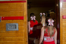 USA. Odessa, TX. 2017. Odessa high school cheerleaders before...