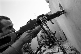 IRAQ. 2016. A peshmerga fighter shoots at ISIS held postions...