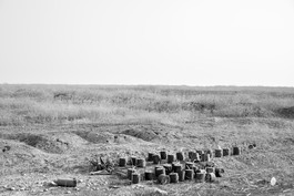 IRAQ. 2016. Unexploded IED's on the side of a road leading to...