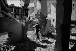 TURKEY. Cizre. March 2, 2016. A boy walks amid the rubble of...