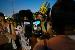 Susan Meiselas and Larry Towell were both present at the 2016 DNC, which was held in Philadelphia. Meiselas covered events in the convention hall but both photographed the crowds of demonstrators who'd gathered outside.
