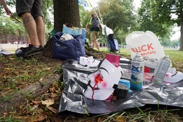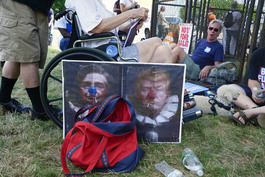 USA. Philadelphia. July 27, 2016. On the street outside the Democratic...