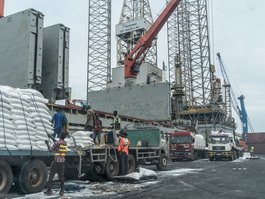 Ghana. Tema. 2016. Food supplies are loaded adjacent to the drilling...