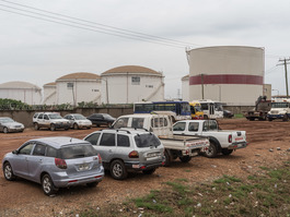 Ghana. Tema. 2016. Tankers and traffic outside Tema Oil refinery...