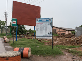 Ghana. Tema. 2016. 'Make More' construction sign on road to Tema...