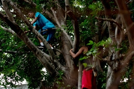 PUERTO RICO. San Juan. 2016. Kids picking quenapa from trees...