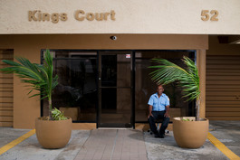 PUERTO RICO. San Juan. 2016. Police woman on guard at Ocean Park...