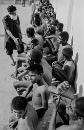 Karachi. Abdul Sattar Edhi visits the girls home in a mansion...