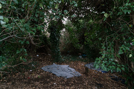 GREECE. Idomeni. March, 2016. A refugee hideout in the woods...