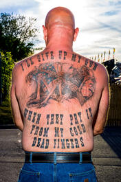 USA. Milwaukee, Wisconsin. 2013. Chris, worker at the state fair....