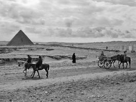EGYPT. Cairo. December 2013. The Giza Pyramids on the outskirts...