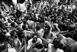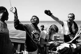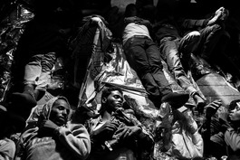 In late July 2015 Paolo Pellegrin boarded an MSF (Doctors Without Borders) ship tasked with intercepting migrant-packed vessels originating from Libya, bound for Europe. Eritrean migrants, who were rescued at sea by this ship, the Bourbon Argos, were offloaded and then transported to Reggio Calabria, Italy. The Bourbon Argos was patrolling the waters off of Libya when it encountered two wooden boats carrying a total of nearly 700 migrants, according to MSF. The migrants reported that a third boat left Libya with them, but it could not be located by MSF. It was reported to have been rescued the...