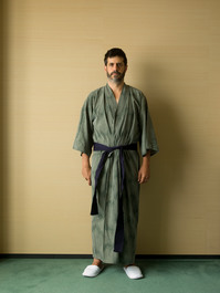 JAPAN. Tokyo. 2015. Alec Soth in a robe and slippers provided...