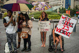 USA. Philadelphia. 2016. Black Lives Matter protest outside of...