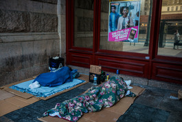 USA. Philadelphia. 2016. Early morning, homeless people sleeping...