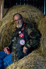 2015. Tennessee. USA. A KKK member at his barn in rural Tennessee...