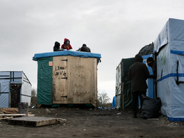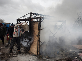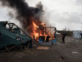 FRANCE. Calais. March 2, 2016. Pro-migrants activists try to...