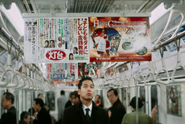 JAPAN. Tokyo. Man reading train advertisments. 2004.