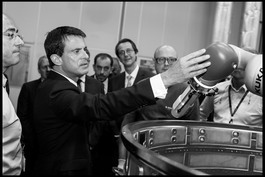 FRANCE. Evry. PM Manuel VALLS visits the "Nomadic Workshop" set...