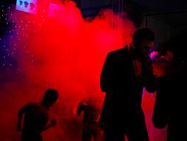 Men dance at a wedding in an illegal - but tolerated - wedding...