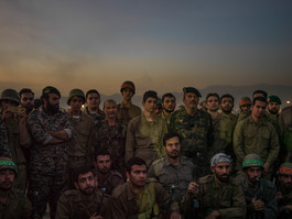 IRAN. 2015. Iranian paramilitary Baseej forces reenact the Iran-Iraq...