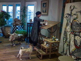 Sahar Khalkhalian a painter finishing an artwork days before...