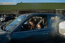 USA. Roseburg, OR. 2015. Strip mall marking lot in Roseburg.