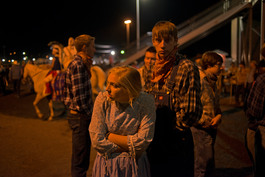 USA. Pendleton, OR. 2015. Backstage, actors dressed to play the...