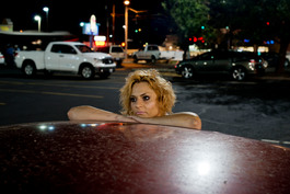 USA. Pendelton, OR. 2015. Lacy in the Safeway parking lot.