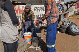South Africa. Thokosa. A tyre repair and wheel changing shop...