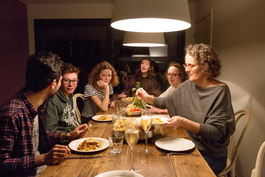 BELGIUM. Brussels. 2016. Serving the Afghan dinner Zafar cooked.