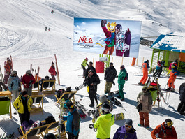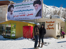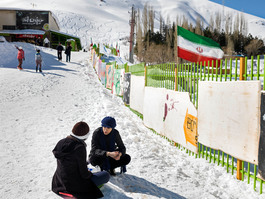 IRAN. Alborz Province. 2016. Iranian skiers and snowboarders...