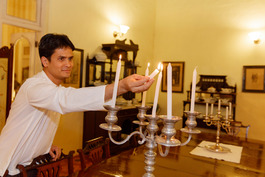 INDIA. Maharashtra. Matheran. Verandah in the forest. Candlelit...