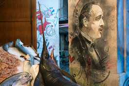 ITALY. Sicily. Palermo. Il Vecchio Mafone restaurant, Capo neighborhood....