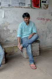 INDIA. Delhi. 2016. Kanhaiya Kumar sitting with friends outside...