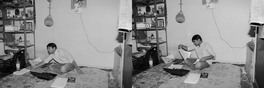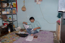 INDIA. Delhi. 2016. Kanhaiya Kumar working in his room.