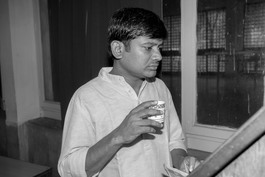 INDIA. Delhi. 2016. Kanhaiya Kumar at a tea shop outside his...