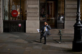 UK. London. June 24th, 2016. Banker from Natwest on lunch break...