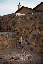 USA. El Paso, TX. 2016. Back yard of a home in a new housing...