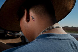 USA. Calexico, CA. 2016. King of Hearts working in a field harvesting...